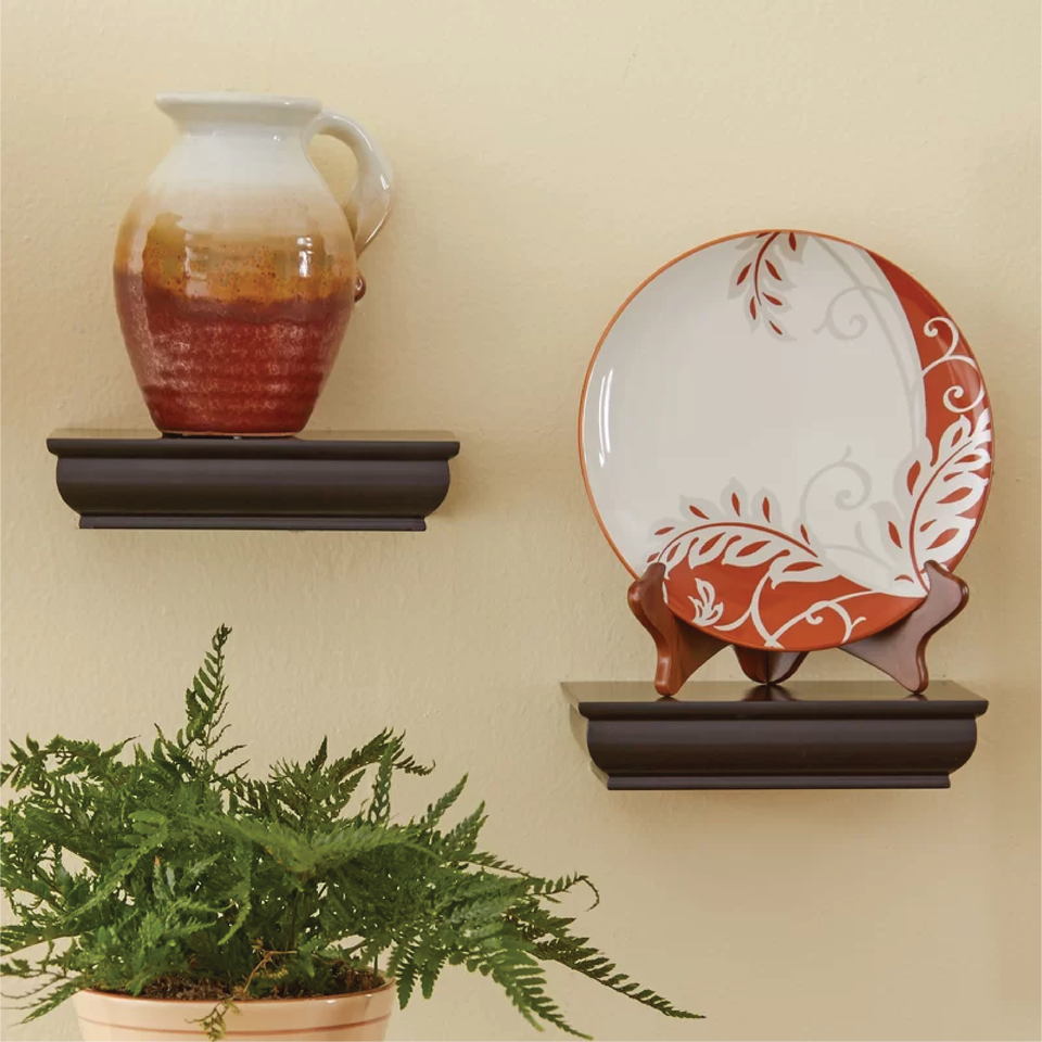 Clásico Blanco/café flotante de madera maciza moderno ecológico estante decorativo de pared juego de bordes 2 para muebles de sala de estar