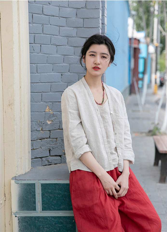 Product Name:Linen Long Sleeve V Neck Shirt Linen Top Coat
