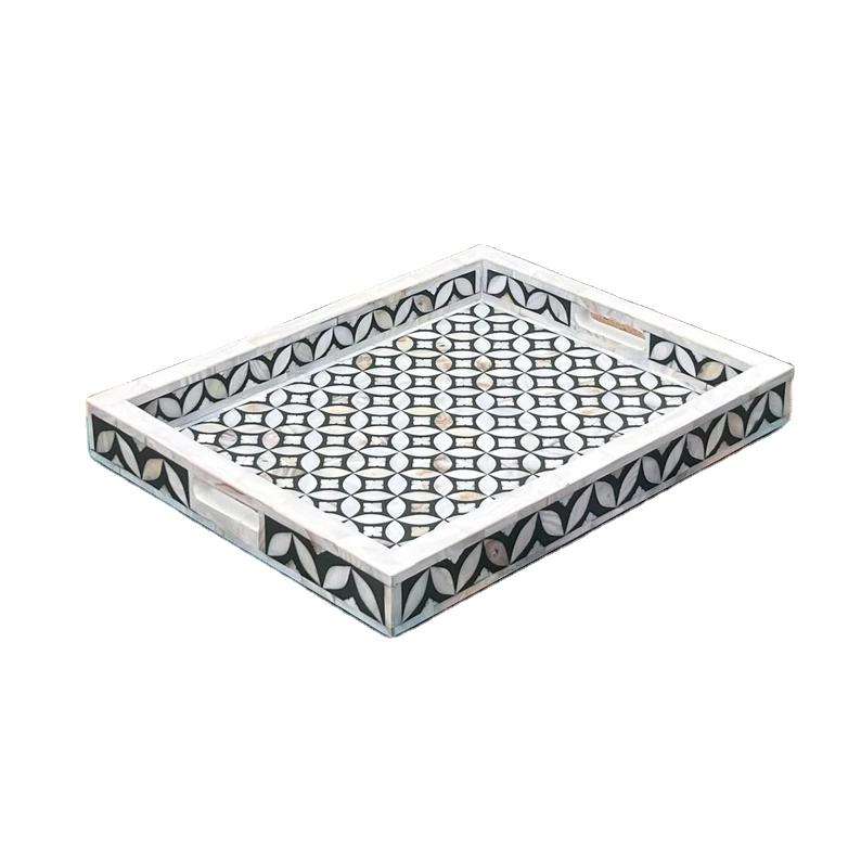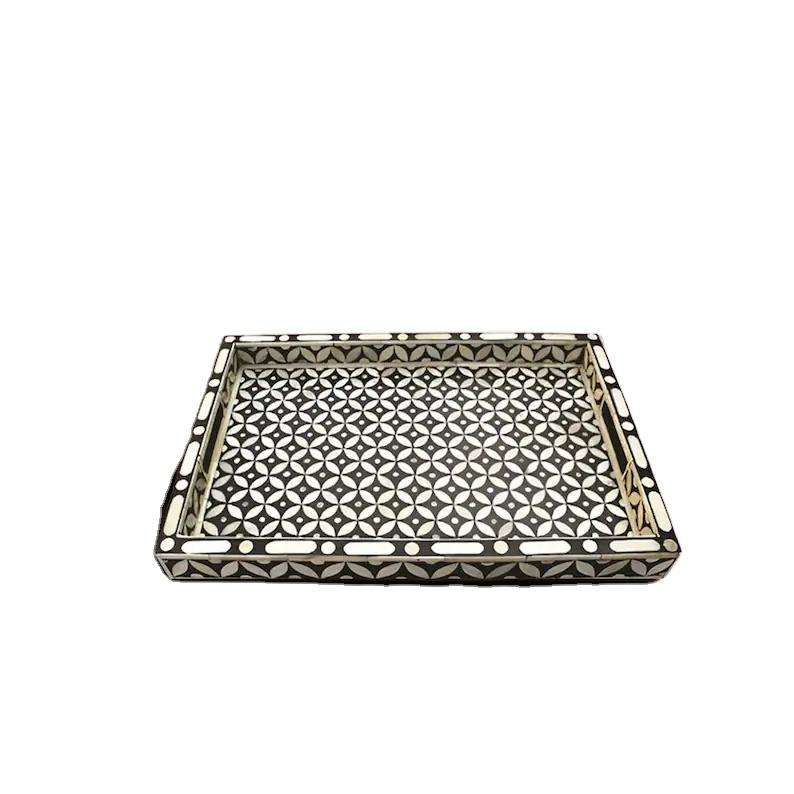 Bandeja de incrustaciones de madera maciza y hueso para el hogar, hotel y restaurante, bandeja clásica de MDF con acabado de producto de supermercado para bodas