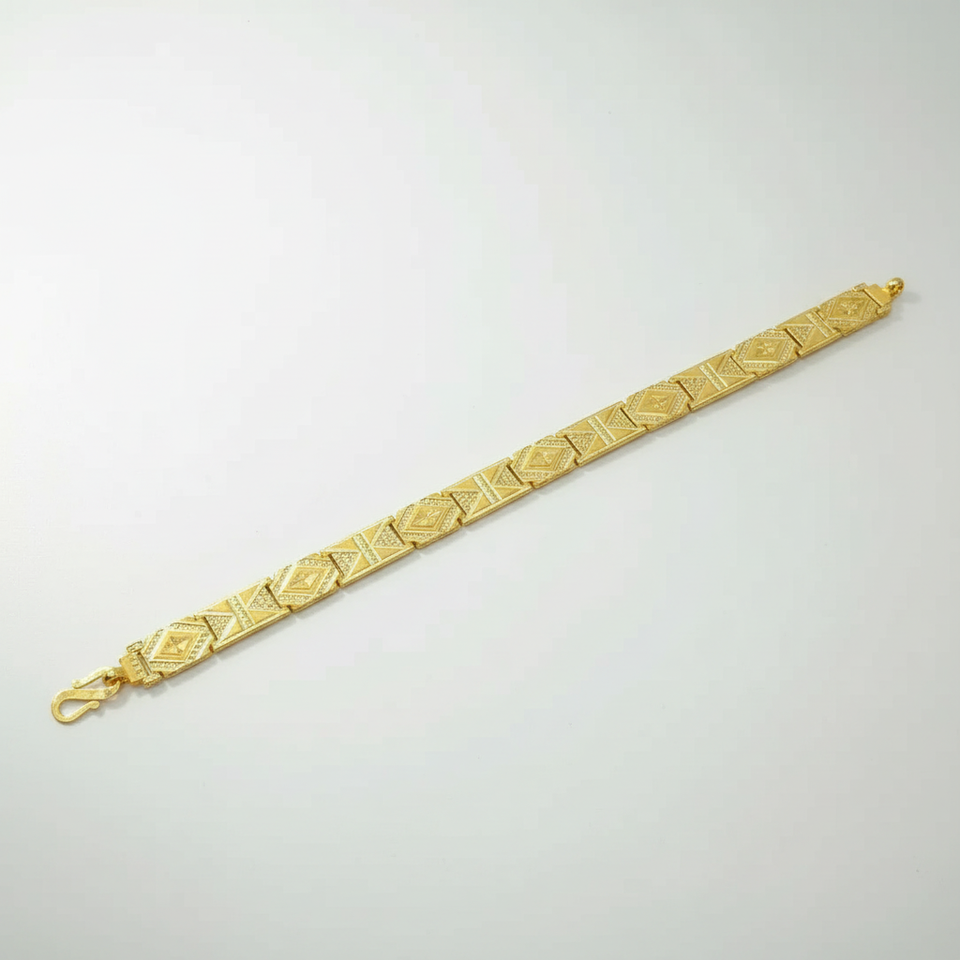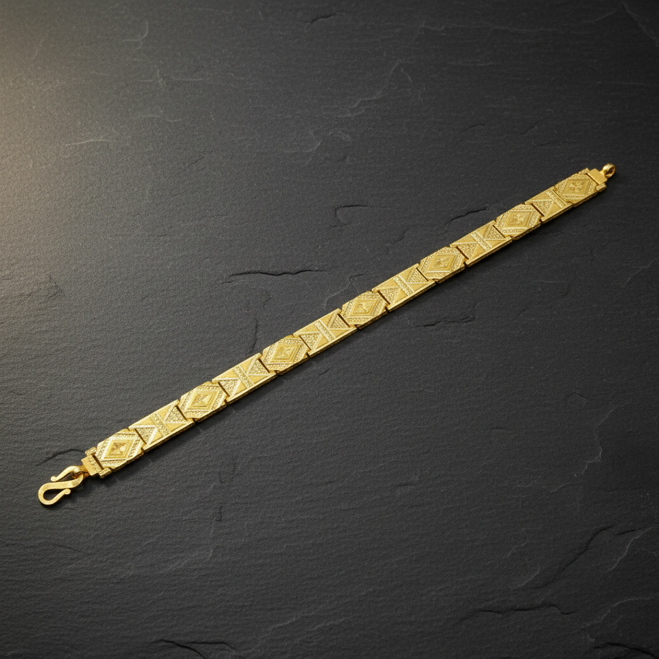 Pulsera de Eslabones con Patrón Clásico en Oro Amarillo, Inspirada en el Estilo Vintage, con Motivo en Forma de Diamante, Joyería Fina