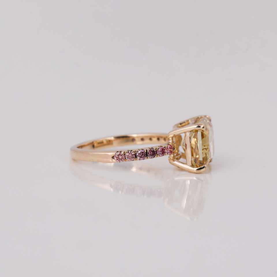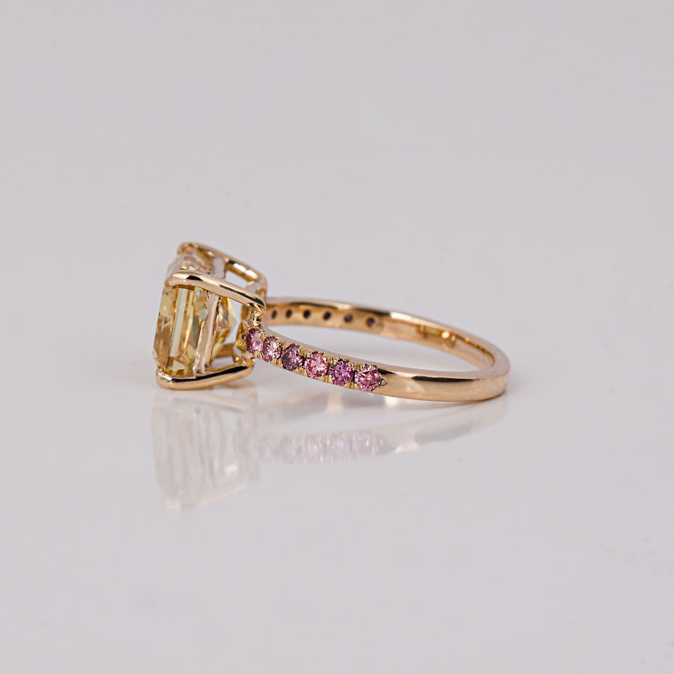 Anillo de compromiso de diamante cultivado en laboratorio de corte radiante amarillo clásico chapado en oro plateado anillo de ajuste de pavé de diamante de corte redondo rosa de moda