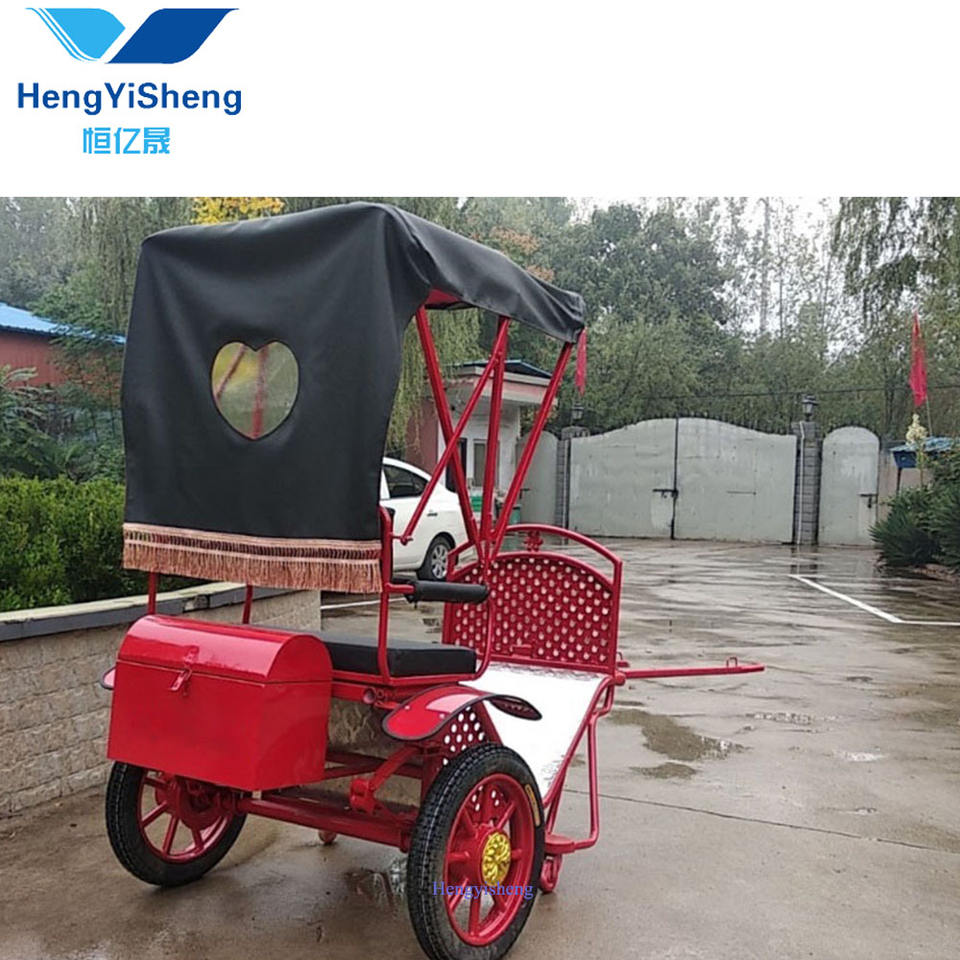 Carrito clásico de caballos rojos de dos ruedas