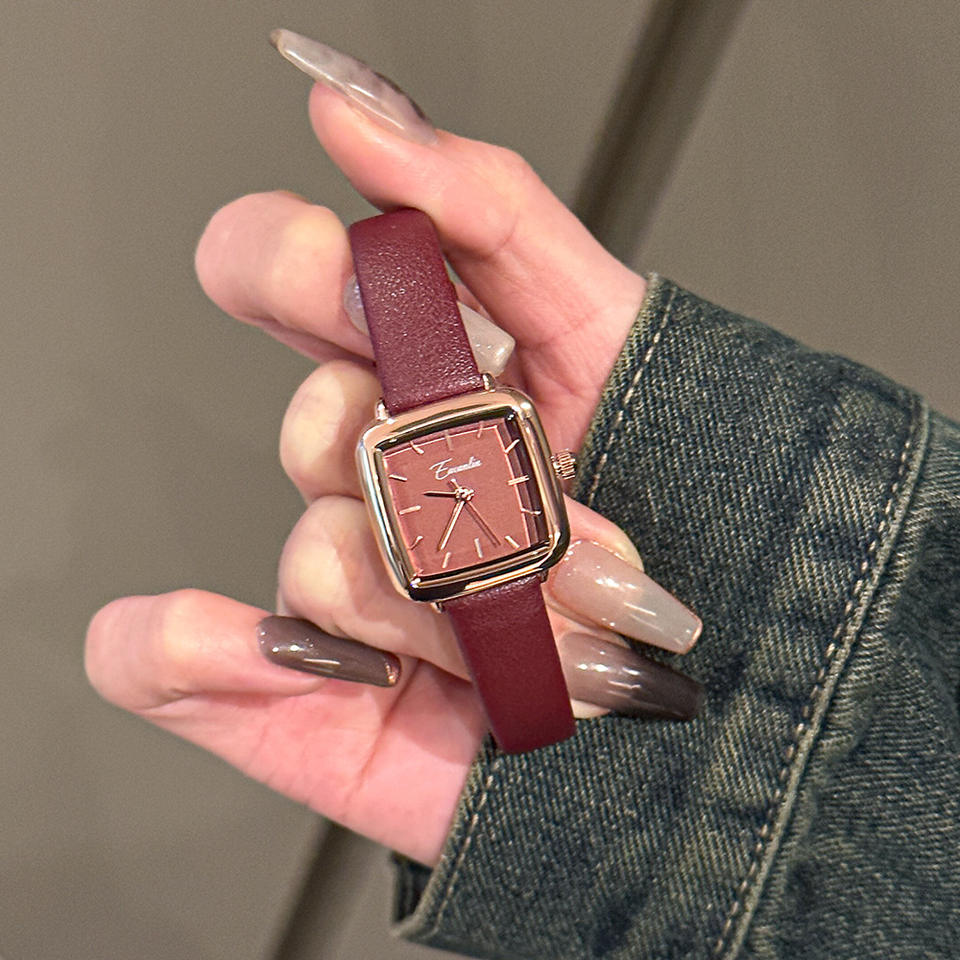 Reloj de mujer de estilo clásico, pequeño reloj cuadrado de cuarzo, reloj de pulsera con correa de cuero simple y elegante