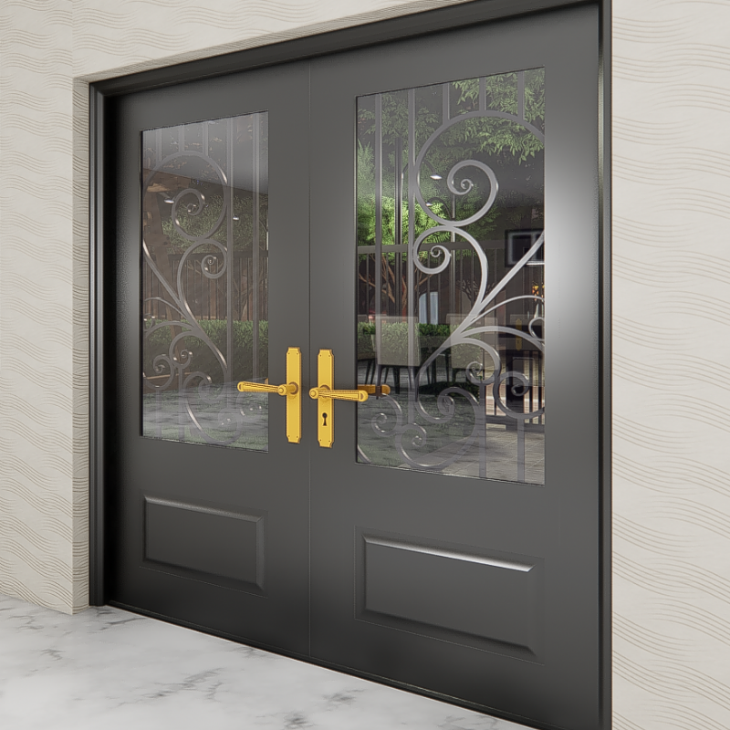 Puerta de entrada de hierro forjado de estilo clásico con diseño atemporal y superficie resistente a la corrosión para una durabilidad duradera