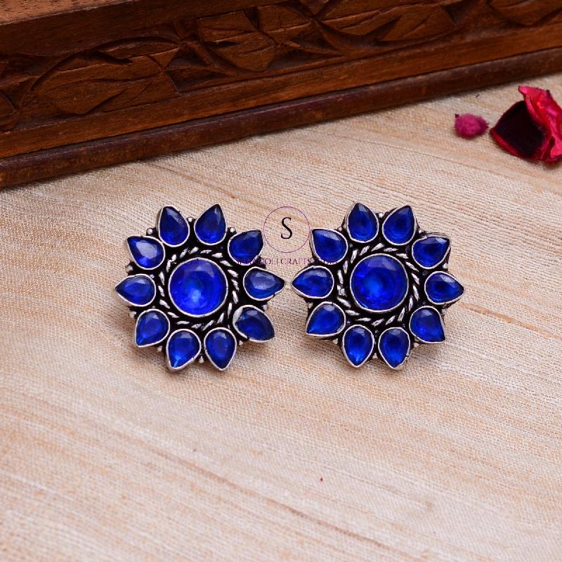 Clásico antiguo tradicional indio hecho a mano elegante alemán plata piedra Stud moda pendientes joyería para mujeres y niñas