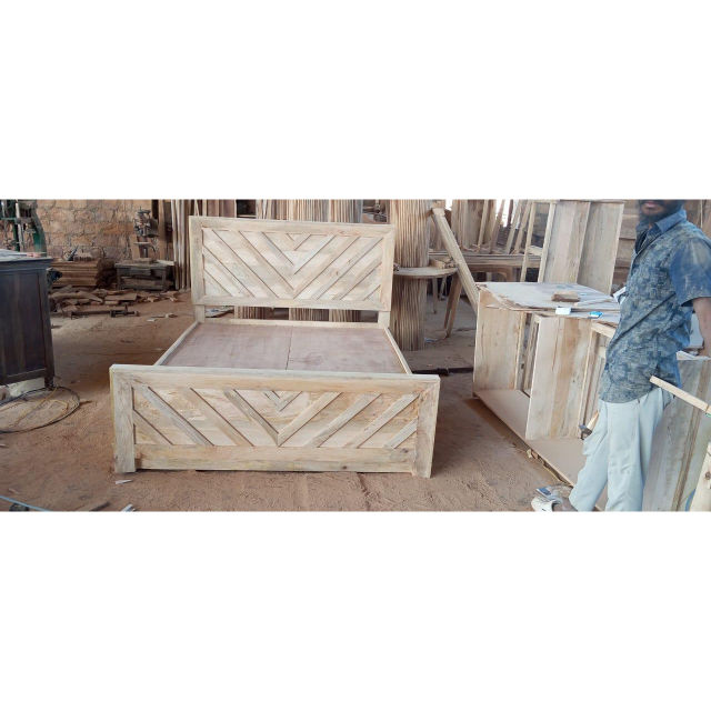 Cama de Madera Maciza de Mango Natural de Diseño Clásico, Cama Queen Size, Muebles de Dormitorio Modernos y Sencillos para el Hogar a Precio de Mayoreo