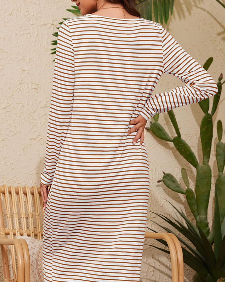 Vestidos largos de punto a rayas para mujer modesta clásica, vestidos elegantes con cuello en U y abertura alta, prendas de punto de calle a la moda con botón frontal