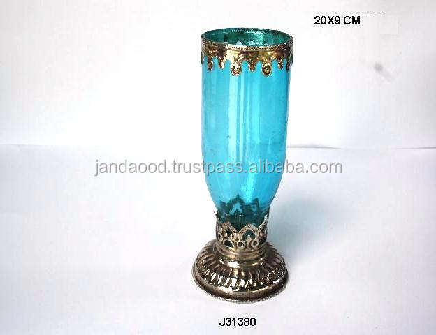 Jarrón de Latón Plateado de Diseño Clásico con Flores de Vidrio Soplado para Decoración del Hogar, Bodas, Perfecto como Maceta Decorativa