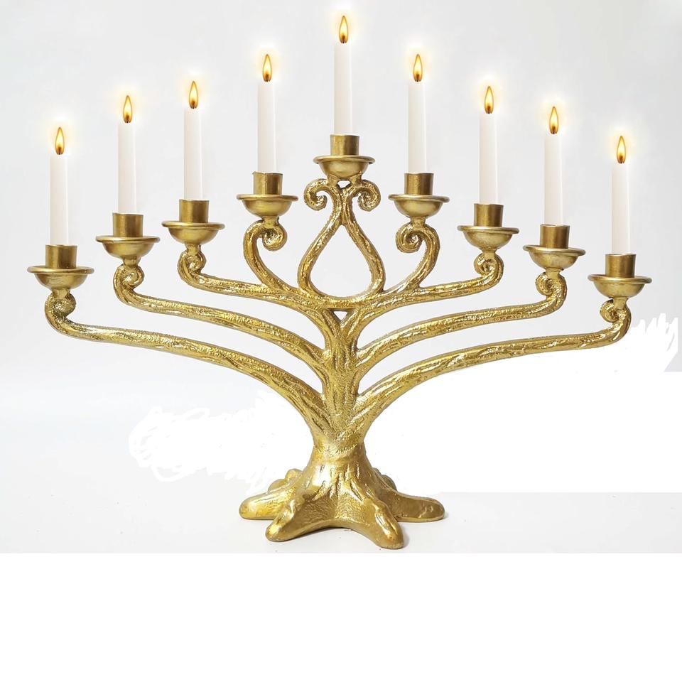 Elegante Menorá Árbol de la Vida de 9 Brazos para Hanukkah, Candelabro Dorado para Actividades Religiosas y Ocasiones Especiales, Regalos Judaicos para Cumpleaños