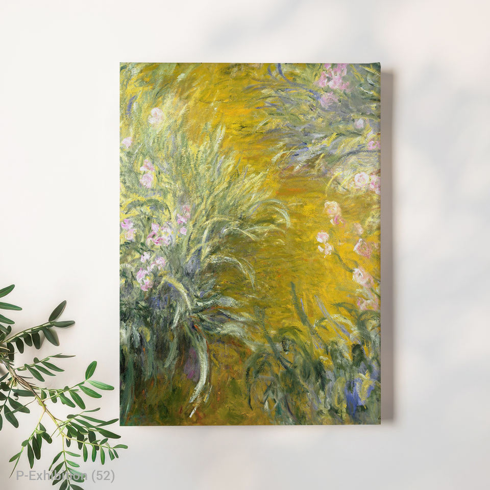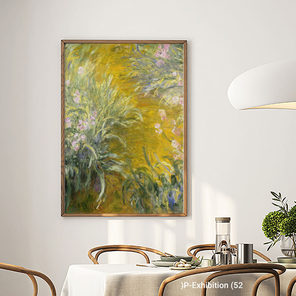 Impresión Artística en Lienzo sobre Madera Moderna de Jardín Verde Exuberante de Claude Monet, Decoración de Pared Inspirada en la Naturaleza Tranquila, Interiores Frescos para Sala de Estar