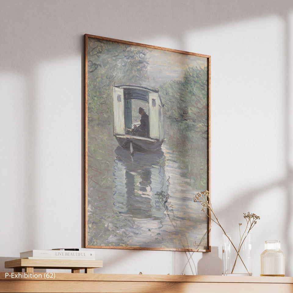 Impresión Artística en Lienzo de Claude Monet, Barco Pequeño en el Río, Póster de Exhibición, Decoración Moderna de Pared con Paisaje de Agua Tranquila para un Hogar Sereno
