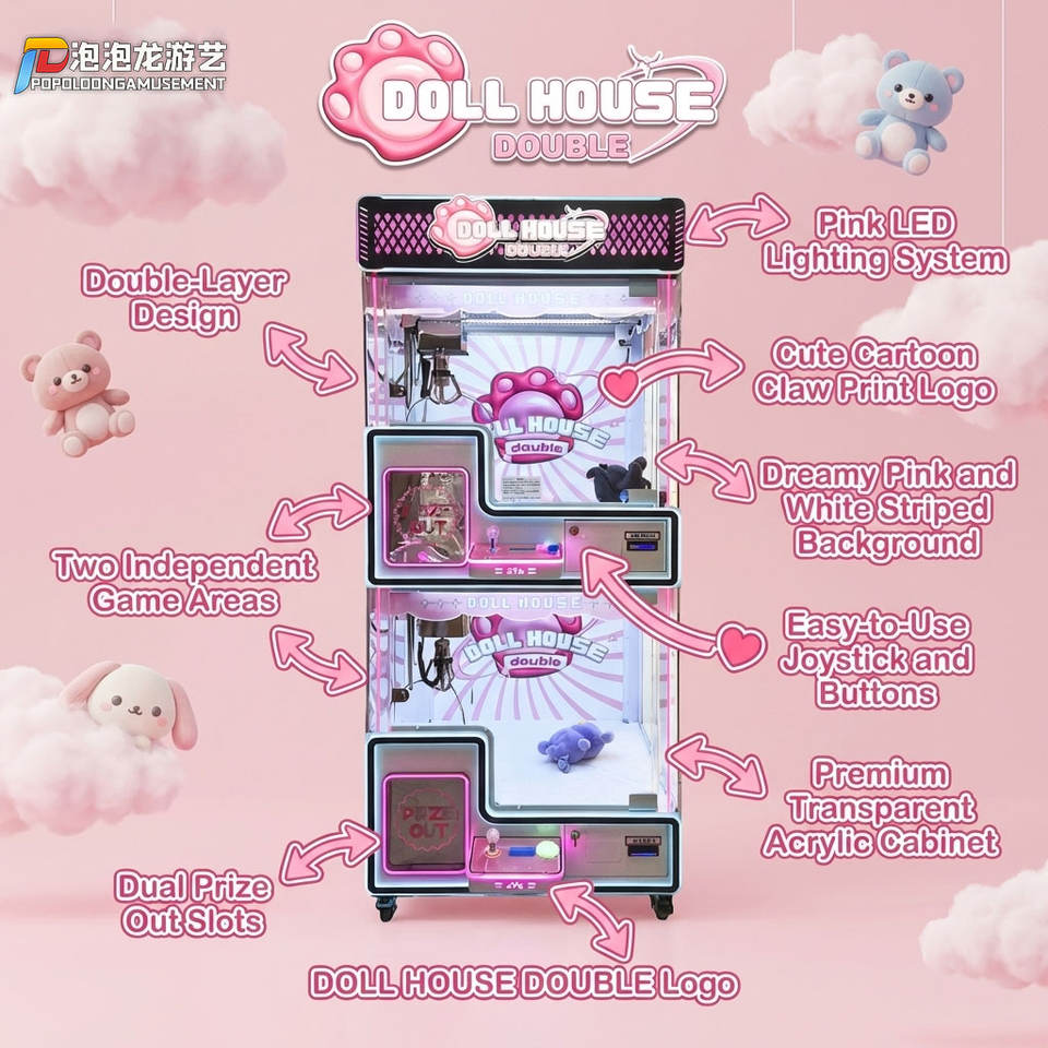 Máquina de garras recreativa operada con monedas, atrapa premios con joystick e iluminación LED