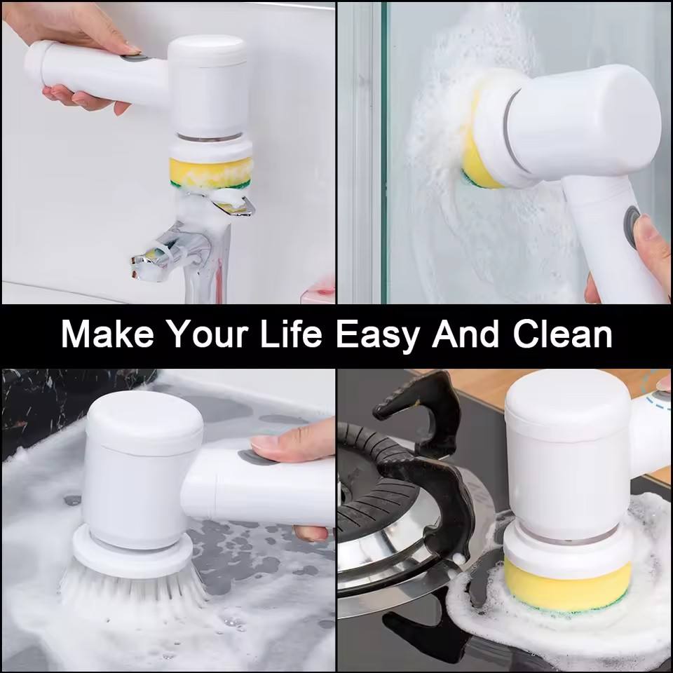 Cepillo de Limpieza Eléctrico USB Tipo C 5 en 1 para Fregadero y Bañera, Herramienta de Limpieza de Baño y Cocina Portátil