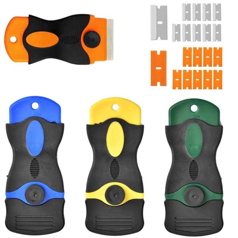 Herramienta de Limpieza para Eliminar Etiquetas, Adhesivos, Calcomanías, Pintura, Raspador de Vidrio para Ventanas, Raspador de Plástico Retráctil con Cuchilla