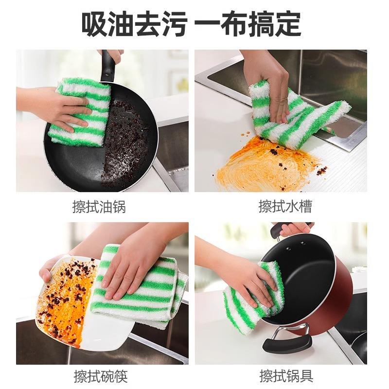 Paño de Cocina de Fibra de Bambú para una Limpieza Duradera, 18x23cm 25x25cm, Absorbente, Antiadherente, Toalla de Limpieza para Cocina, Verde a Rayas