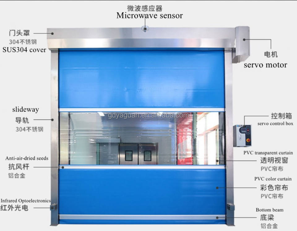 Puerta Rápida para Cuartos Limpios/Puerta Enrollable de Alta Velocidad con Cortina de PVC y Diseño de Barra Antiviento con Radar para Procesamiento de Alimentos