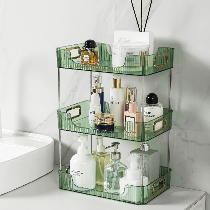 Bandeja de Almacenamiento Transparente Plegable Rectangular Doble Moderna de Plástico ABS Transparente con Asas para Cocina y Cosméticos