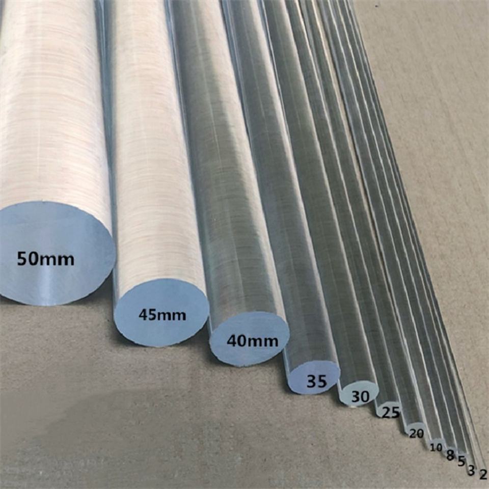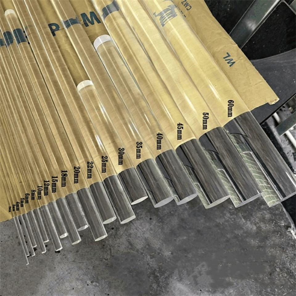 Barra/Varilla Redonda Sólida de Acrílico PMMA Transparente/Colorida, 2000 mm de Longitud, Personalizable, Certificada para Iluminación de Paredes LED