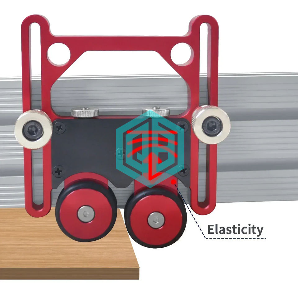 Guías en stock de corte claro, rueda unidireccional elástica, tablero de plumas ajustable, guías de rodillos antirrebote, herramienta de empuje de seguridad