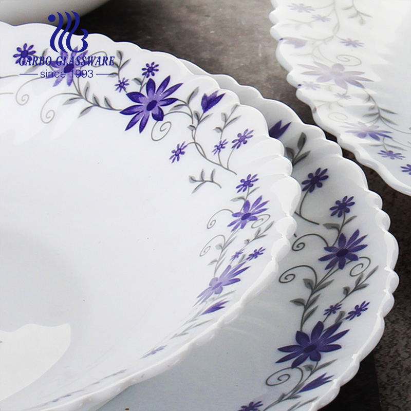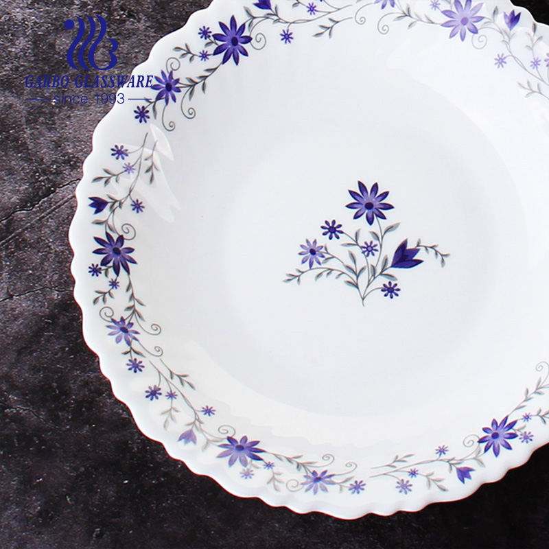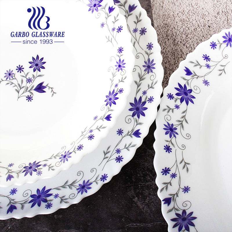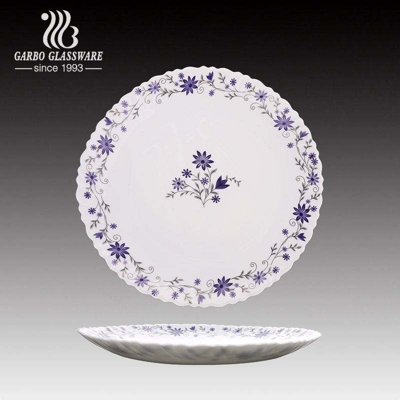 Plato de Vidrio Opal Templado de 10.5 Pulgadas, Plato para Servir, Vajilla de Vidrio Opal, Diseño Floral Personalizado, Plato para Cena, Proveedor Chino