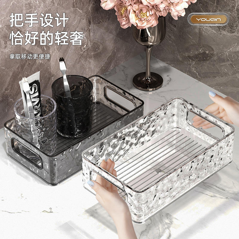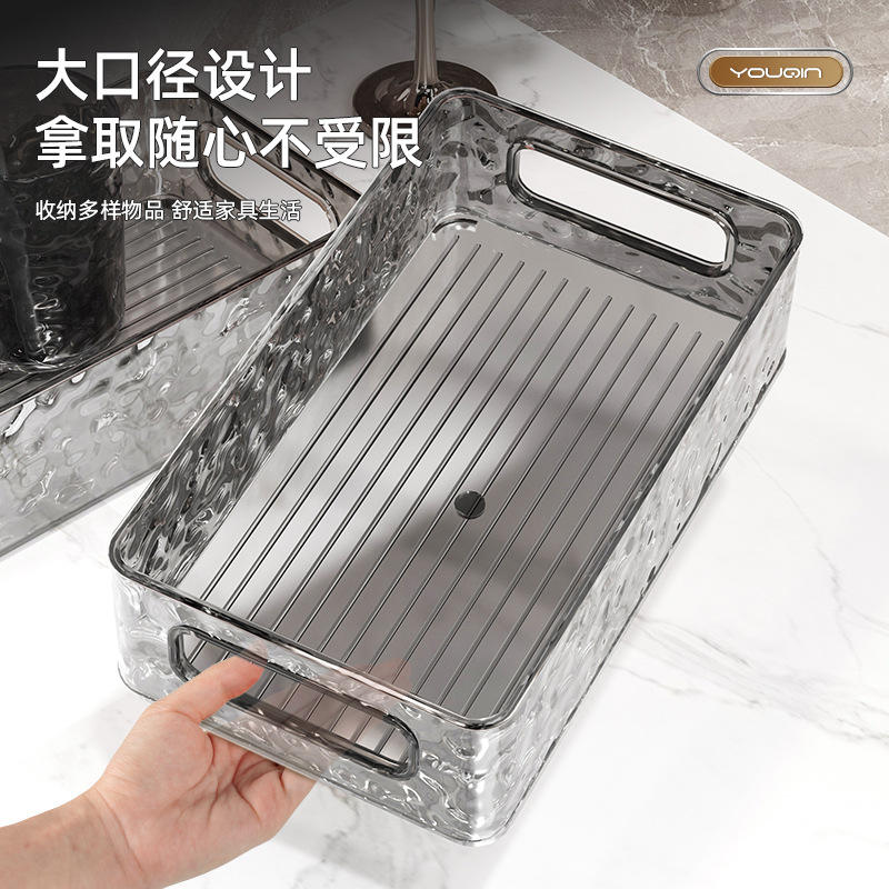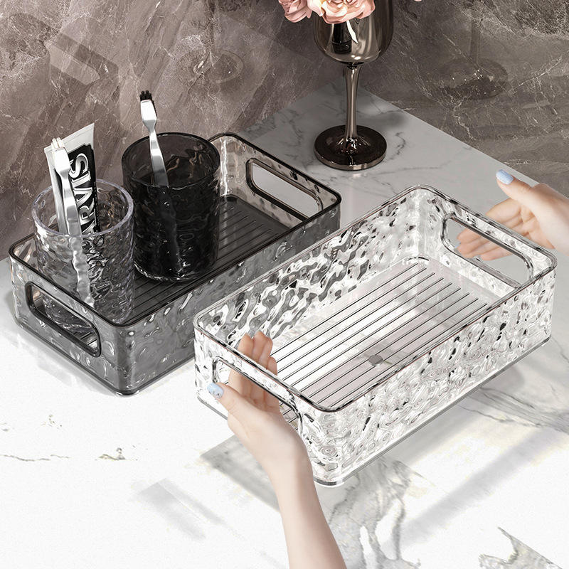 Caja de almacenamiento con diseño de glaciar transparente, organizador de escritorio de plástico rectangular para maquillaje, sala de estar, uso doméstico, sin tapa, capacidad de 45L