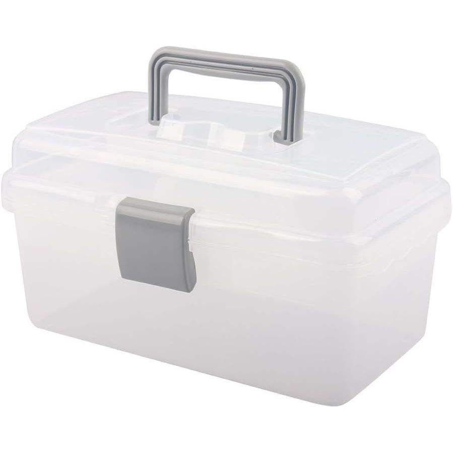 Contenedor de Almacenamiento de Plástico Transparente Gris con Asa y Cierre, Caja Multiusos
