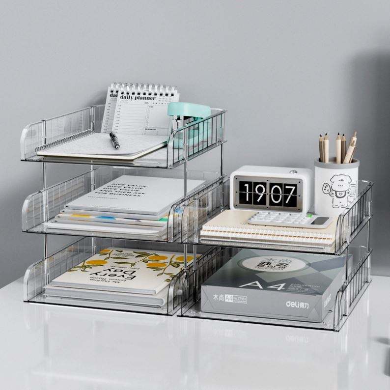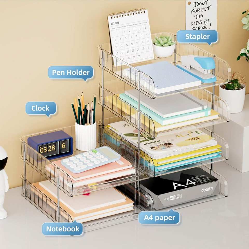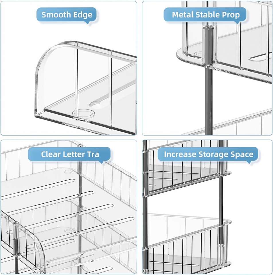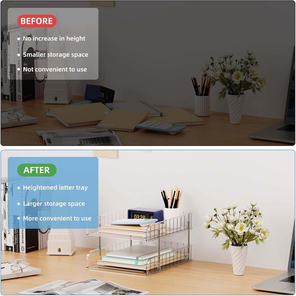 Organizador de Escritorio Transparente de 2 Niveles, Apilable, para Papel, Cartas y Archivos de Oficina, Tamaño Carta/A4