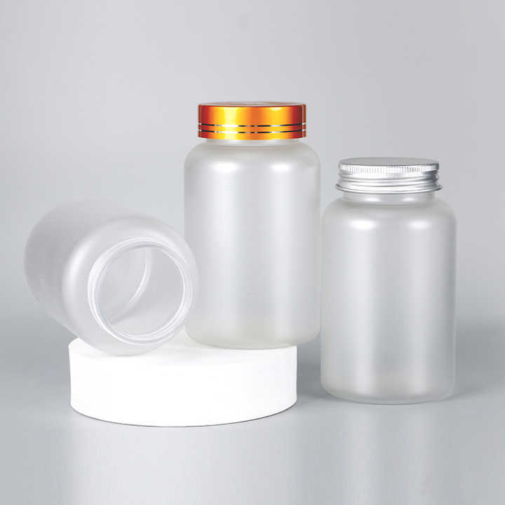 Envase Transparente Mate de PET para Pastillas de 100ml, 150ml, 200ml, 300ml, 10oz con Tapa de Rosca Dorada o Plateada para Vitaminas y Medicamentos