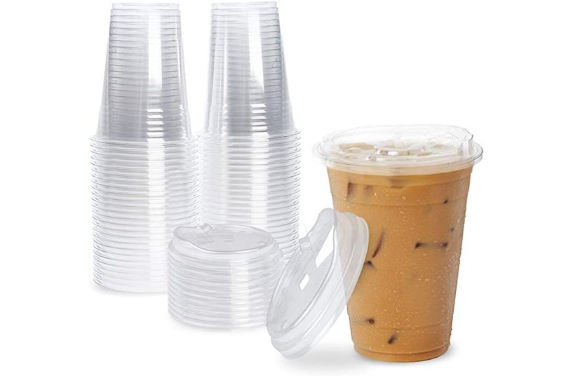 Taza de plástico REDONDA/PET/alimentos y bebidas contiene/paredes individuales con tapa