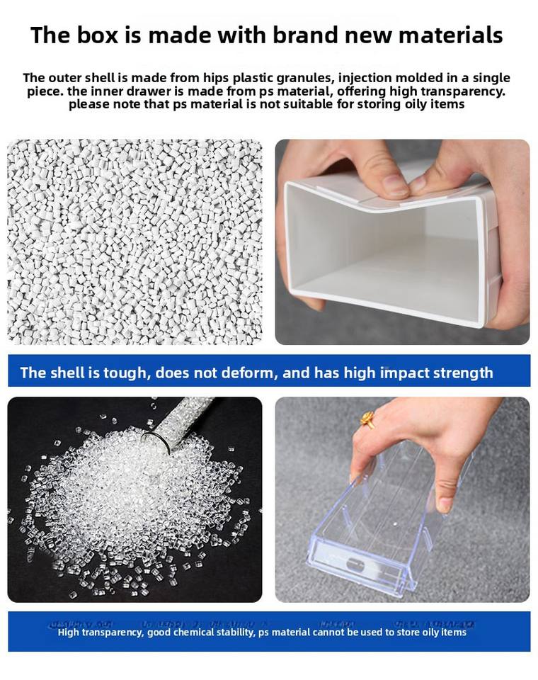 Caja de Almacenamiento Modular Rectangular de Plástico PS Transparente - Organización Versátil para el Hogar, para Tornillos, Ladrillos, Piezas Pequeñas y Ferretería