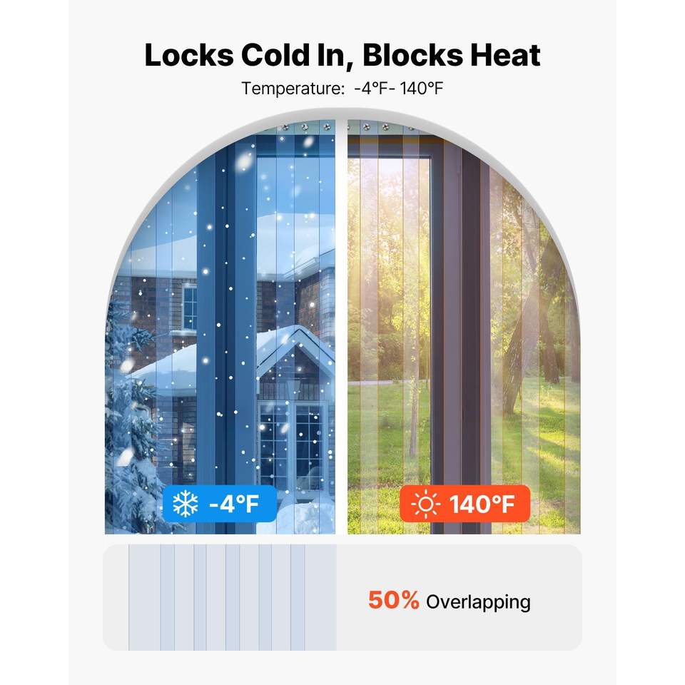 Cortina de tiras de PVC transparente de 50 pies de largo x 8 de ancho, rollo a granel de tiras de plástico para puertas, tiras de cortina para congeladores y refrigeradores, para puertas de garajes
