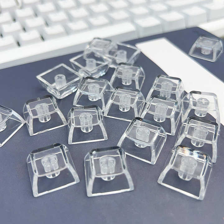 Teclas transparentes para PC, estilo cristalino, altura XDA, con orificio cruzado, para teclado mecánico, colgante para llavero, teclas antiestrés