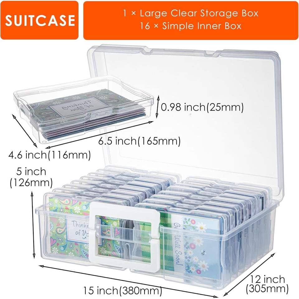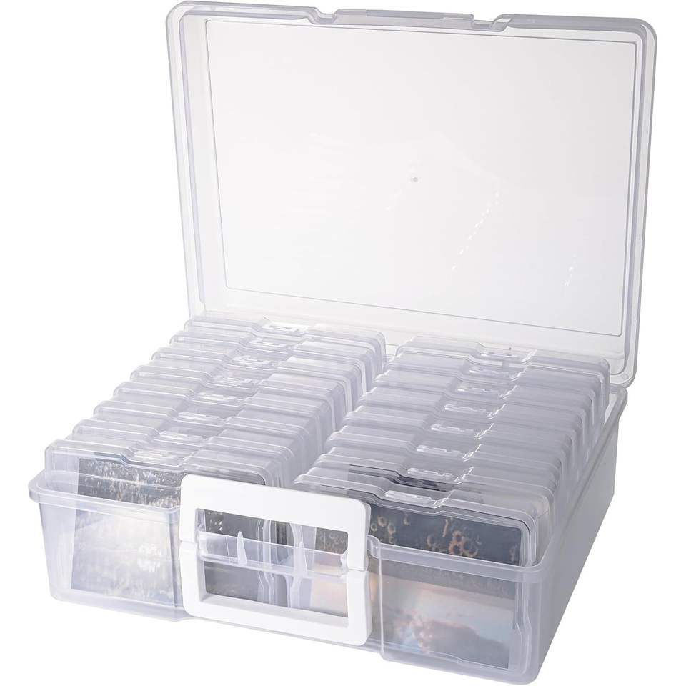 Caja de Almacenamiento de Fotos de Plástico Transparente con Asa, 16 Estuches para Fotos de 4-6 Pulgadas, Contenedores Verdes para Almacenamiento de Papel y Medios