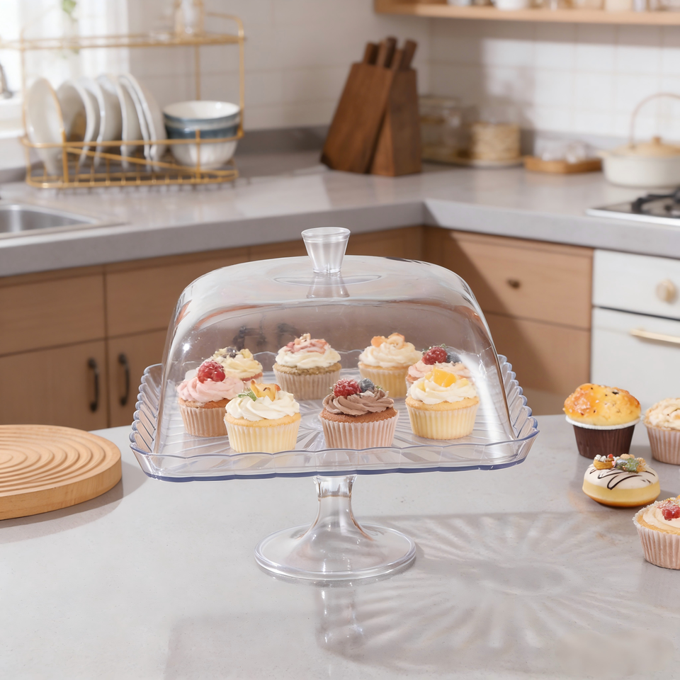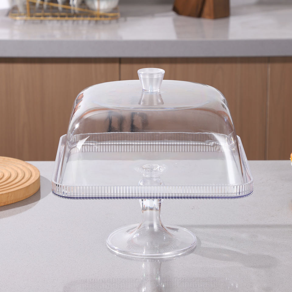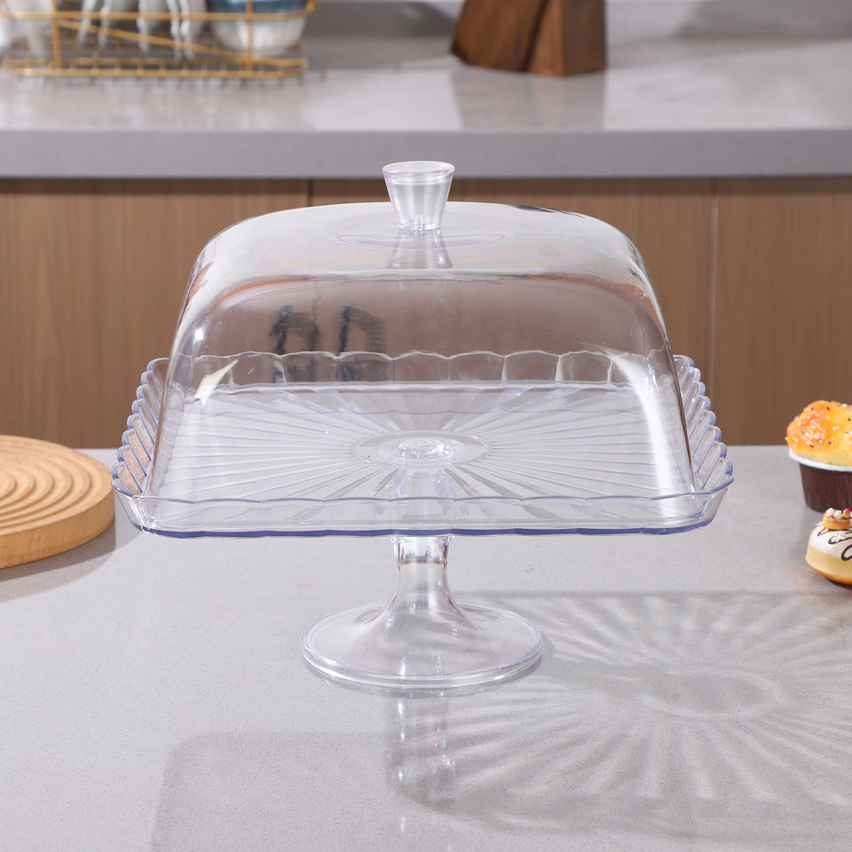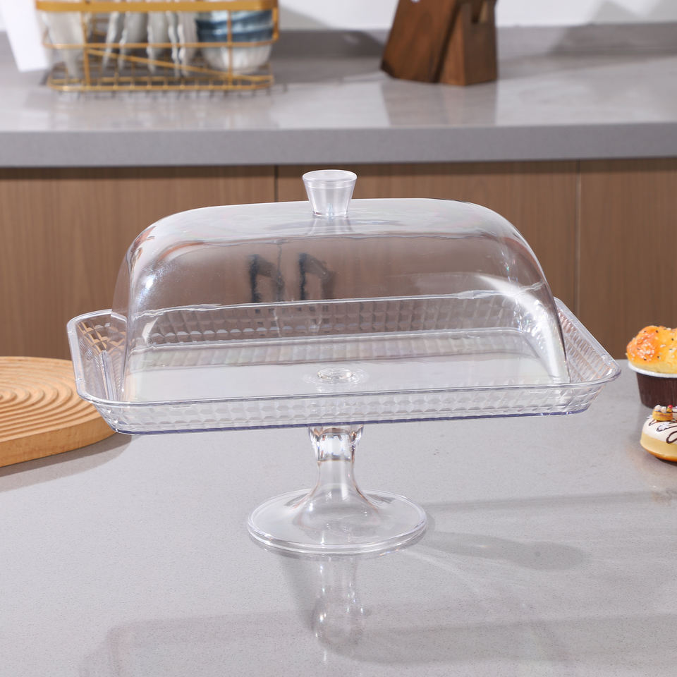 Base Rectangular Transparente para Pastel con Cubierta de Domo, Bandeja de Exhibición de Alimentos con Pedestal para Postres, Buffet, Fiestas, Hogar, Panadería, Cafetería