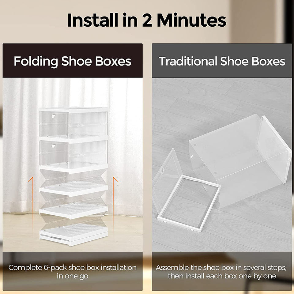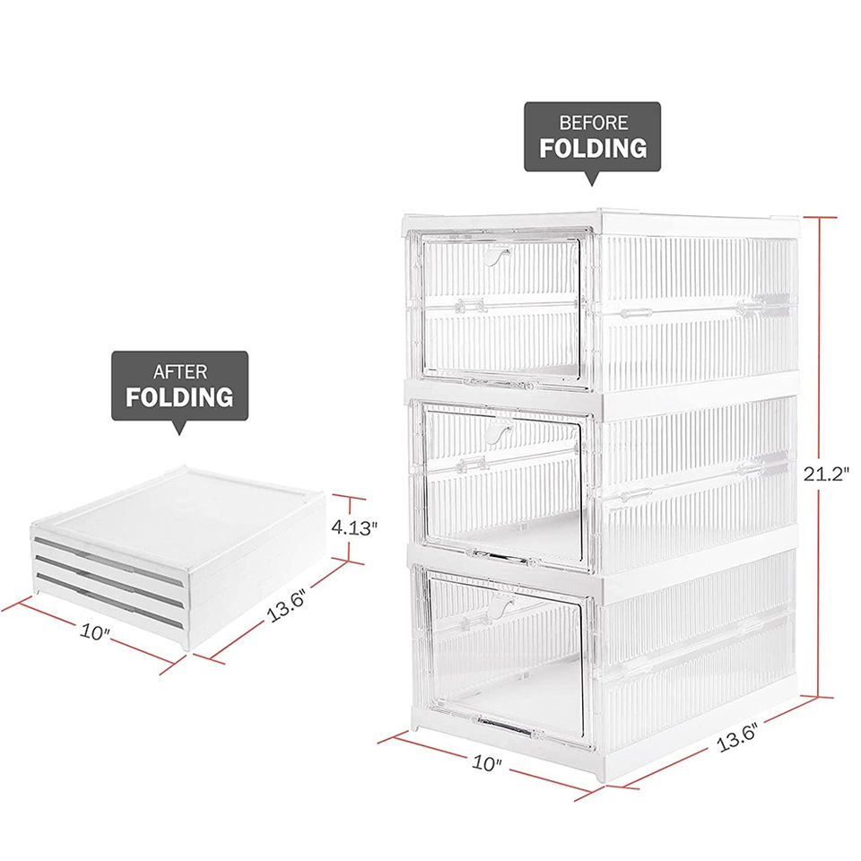 Organizador de Zapatos Plegable Cuadrado de Plástico Transparente, Contenedor Apilable para Zapatillas, Ahorro de Espacio en el Armario