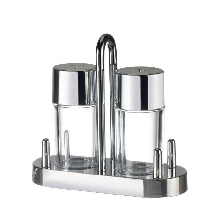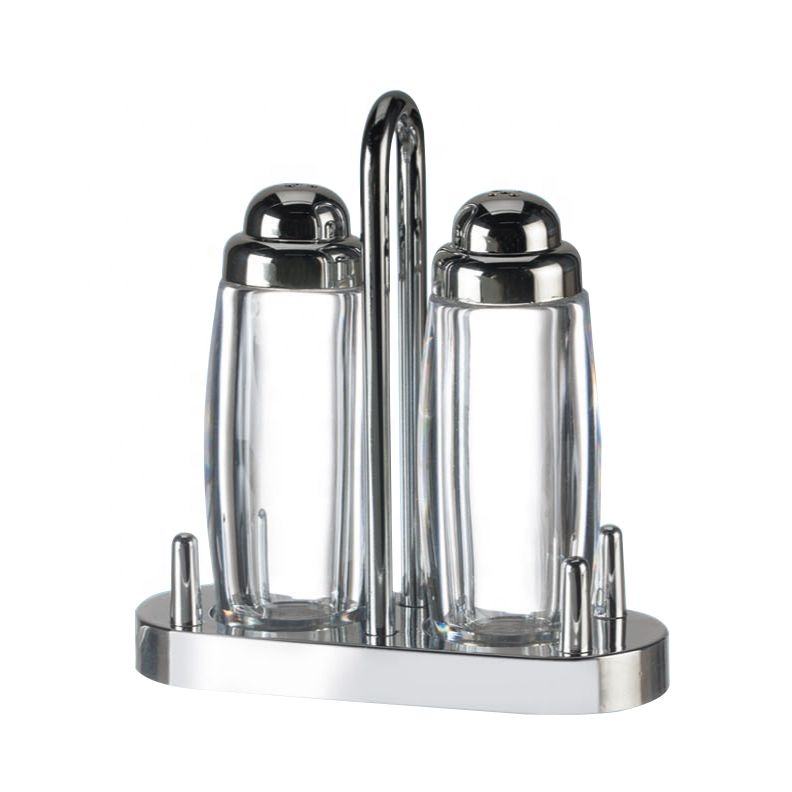 Juego de Salero y pimentero transparente con soporte