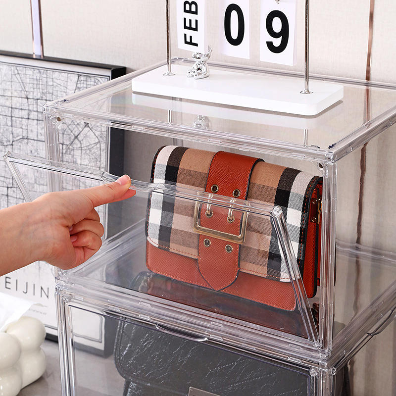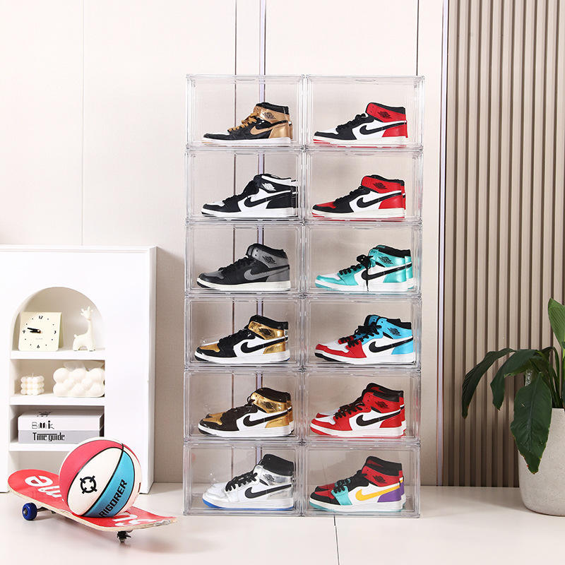 Caja de zapatos transparente con apertura lateral y tapa, estante de almacenamiento a prueba de polvo para zapatillas deportivas, organizador apilable, forma rectangular