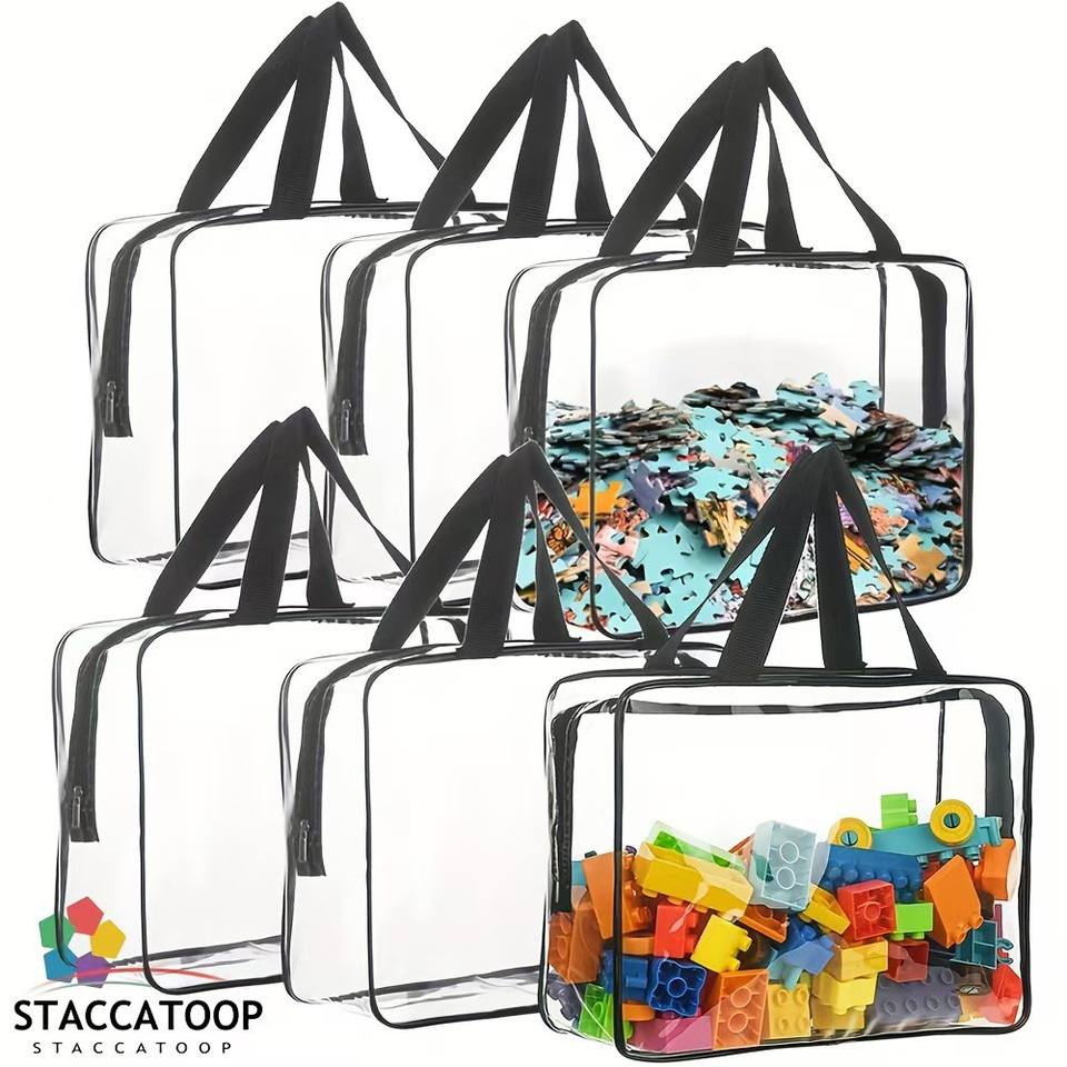Juego de bolsas de almacenamiento transparentes, 6 uds., bolsa organizadora de juguetes impermeable de PVC para niños, almacenamiento de maquillaje para viajes y playa