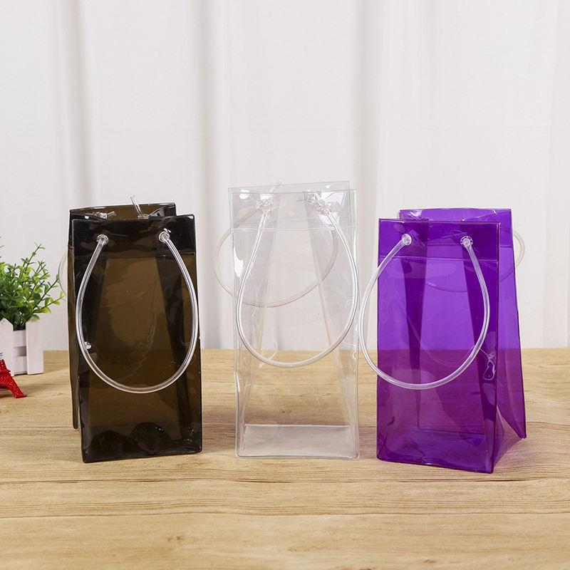 Bolsa de almacenamiento transparente Bolsa de hielo de botella de vino tinto de champán de neón transparente de PVC portátil