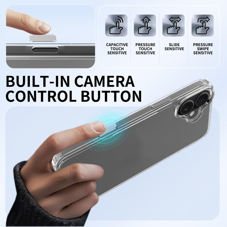 Funda de teléfono de Material compuesto transparente TPU + PC para IPhone16/i16 Pro/i16 Pro Max/i16 Plus Botón DE CONTROL DE CÁMARA incorporado