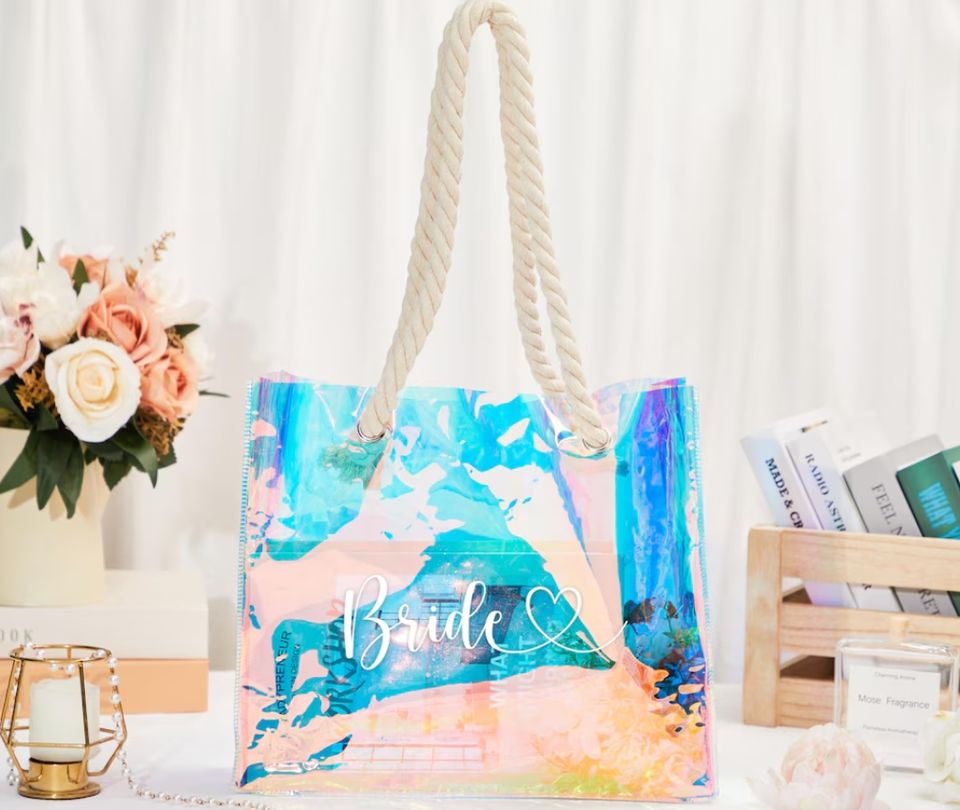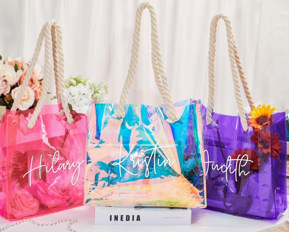Bolsa de compras de PVC transparente, logotipo personalizado, bolsas de plástico de gelatina grandes, bolsa de regalo impermeable para la playa