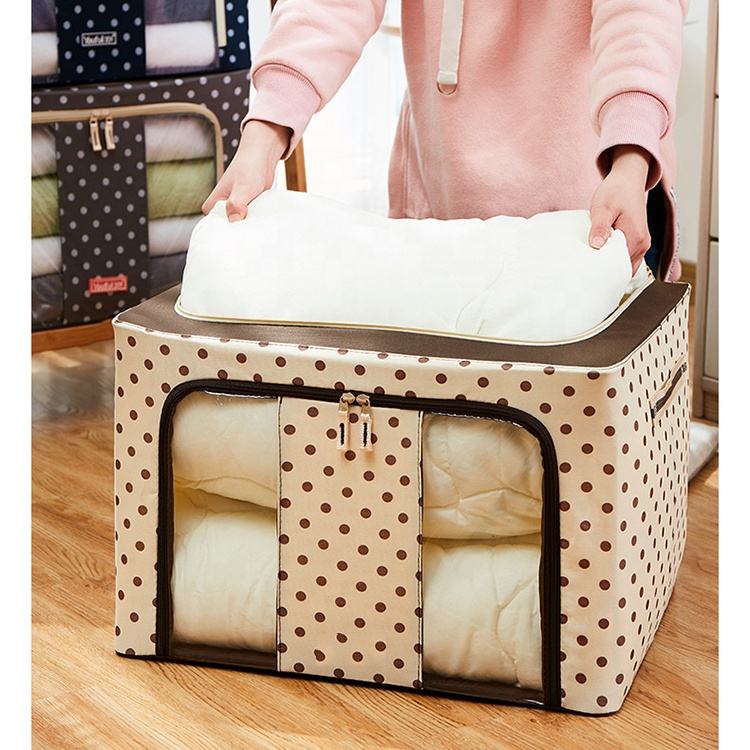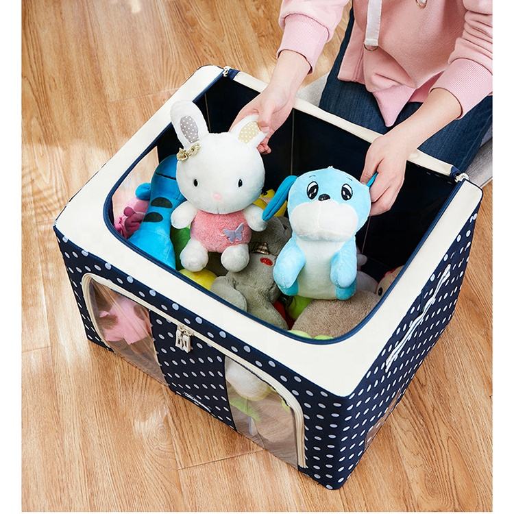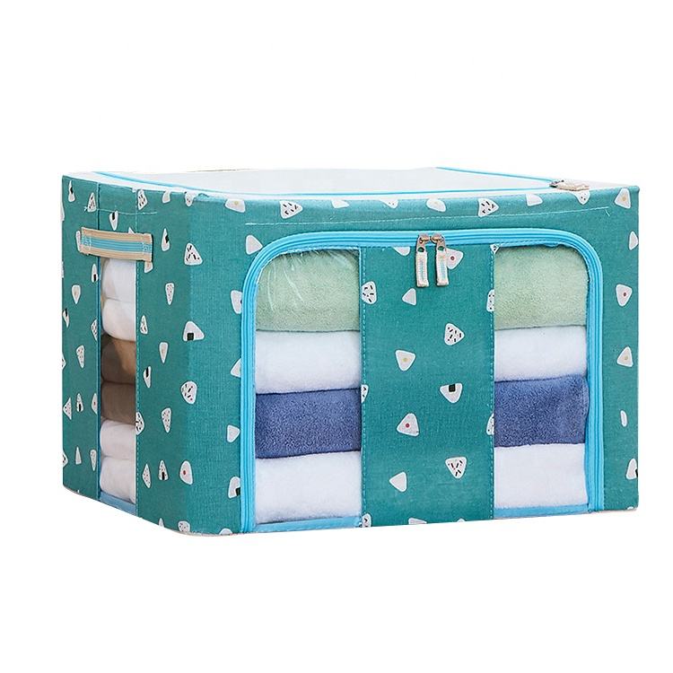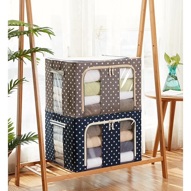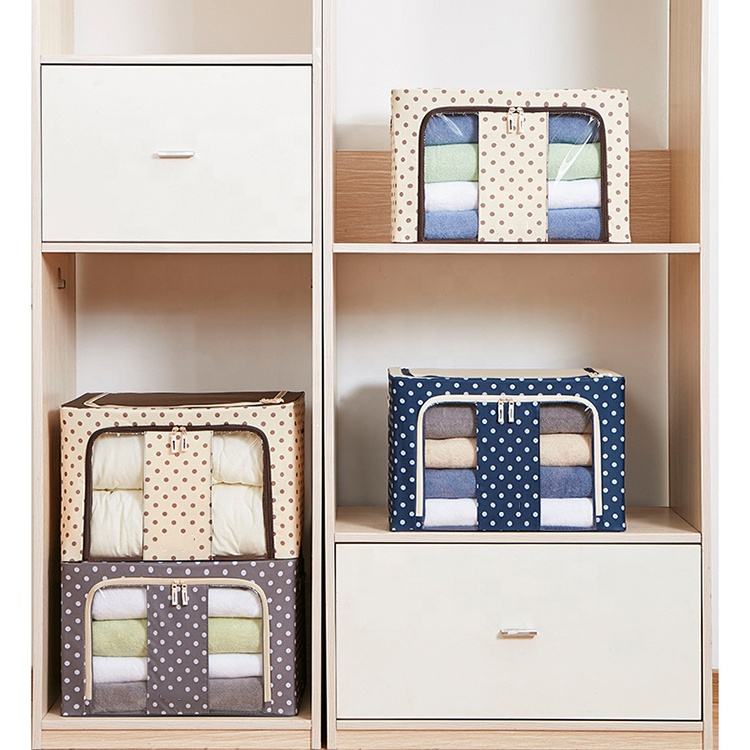 Caja de tela plegable con ventana transparente, organizador de marco de Metal, contenedores de almacenamiento apilables para sistemas de armario, contenedor de almacenamiento de ropa para el hogar