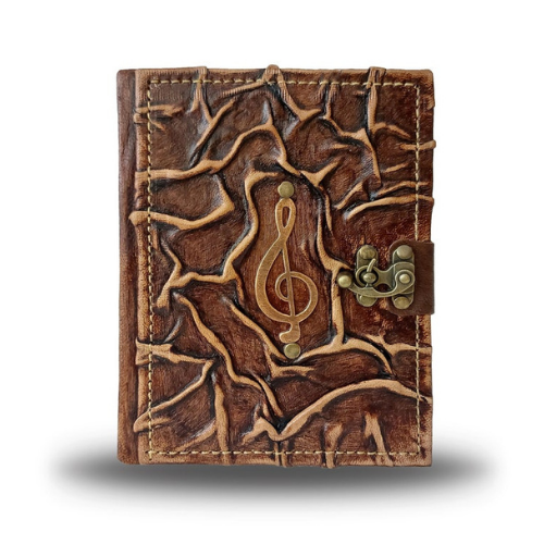 Clef Sign Cuaderno de cuero de tapa dura genuino figurado