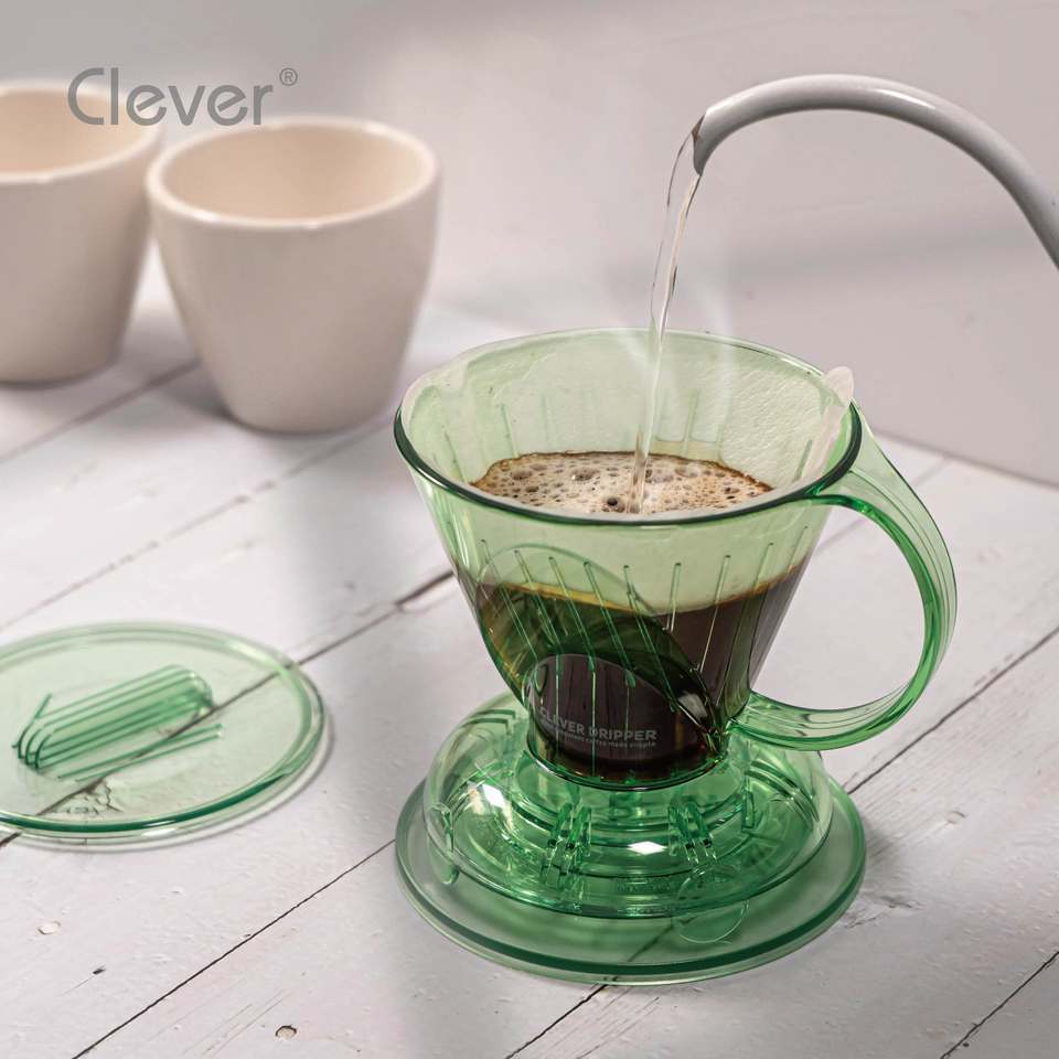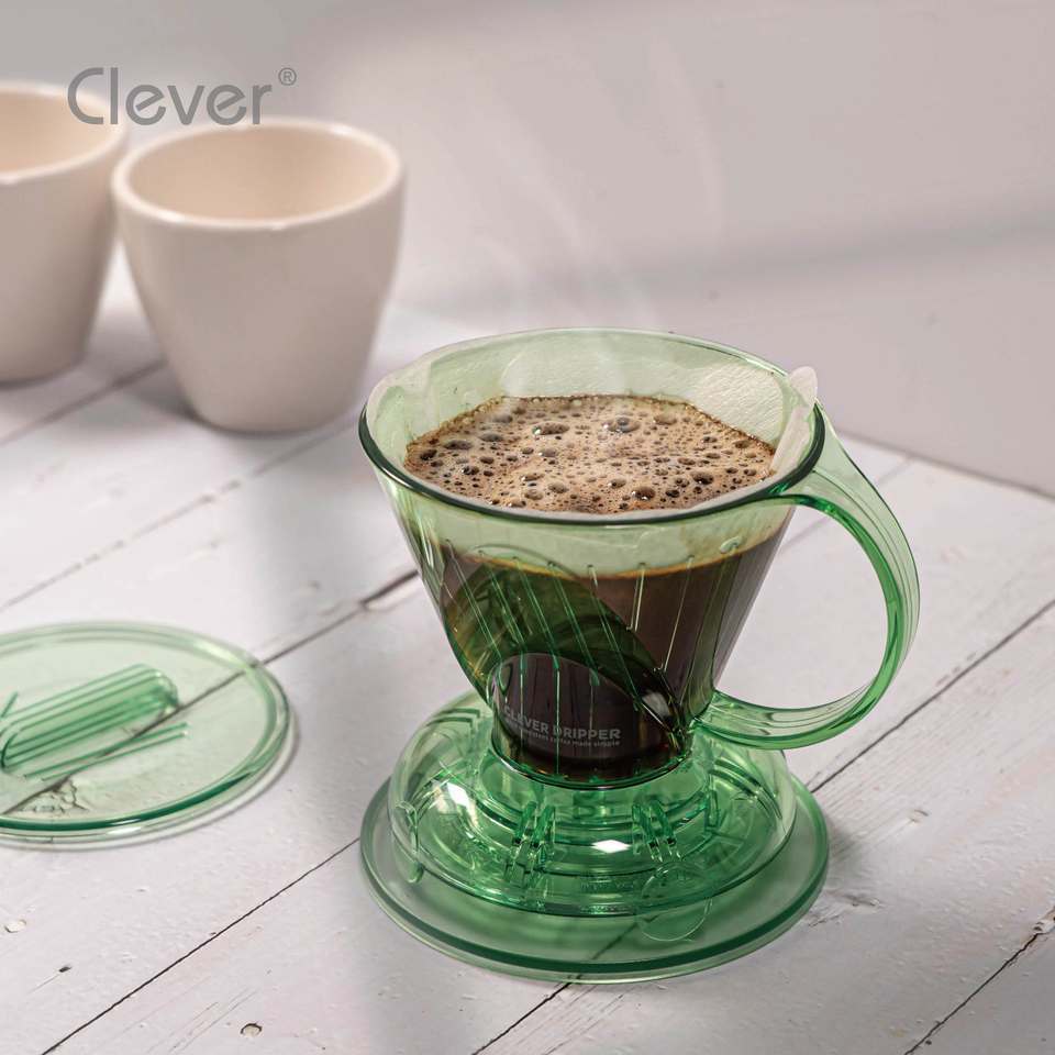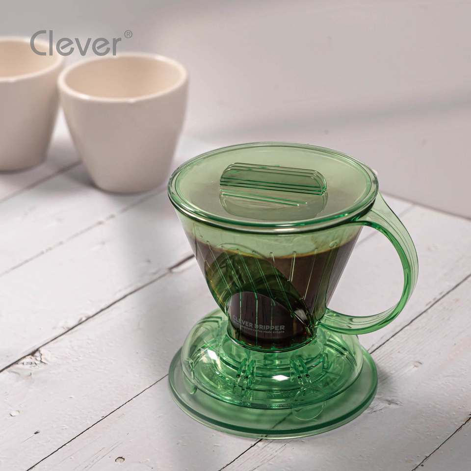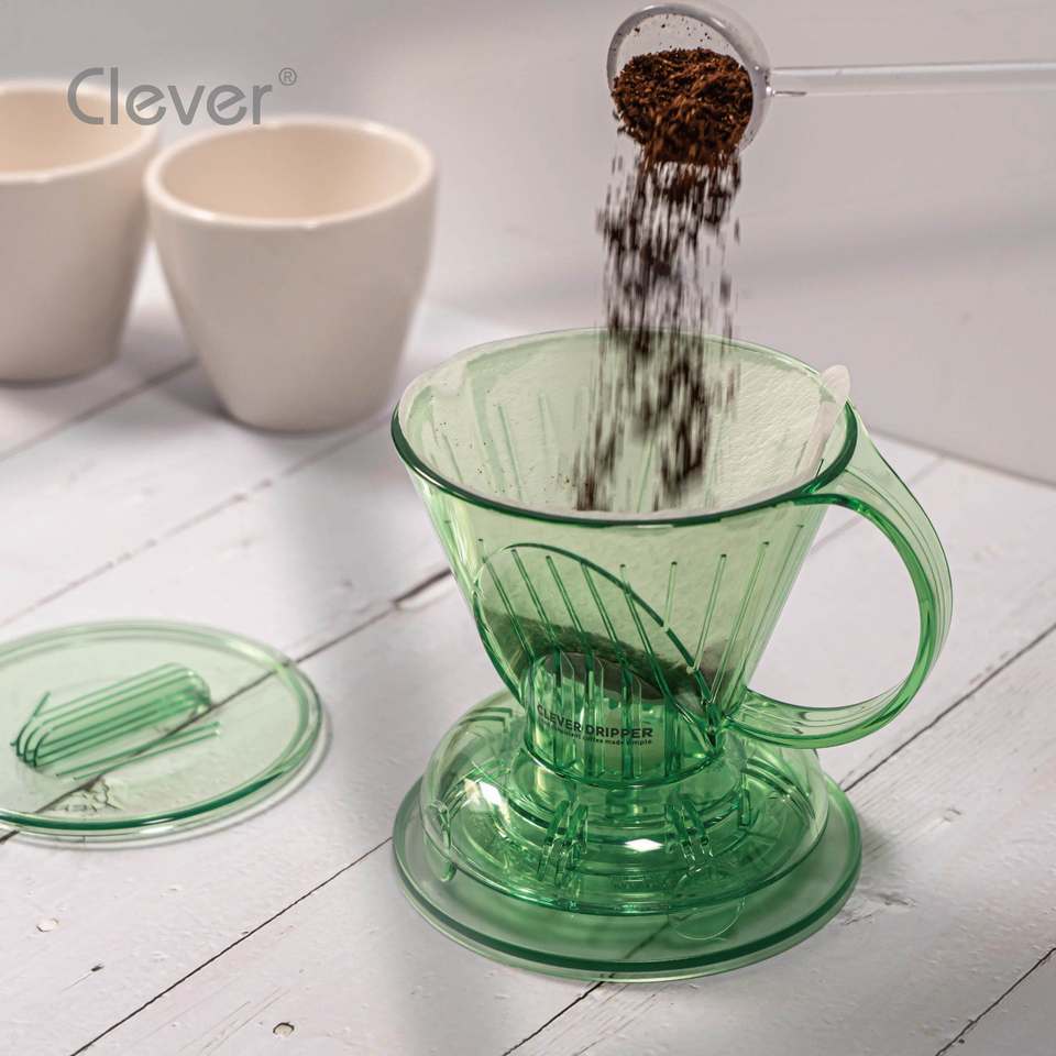 Clever Dripper Mr. Cafetera Ecológica Inteligente de Plástico Translúcido Verde de Grado Alimenticio, Forma Trapezoidal, 300 ml