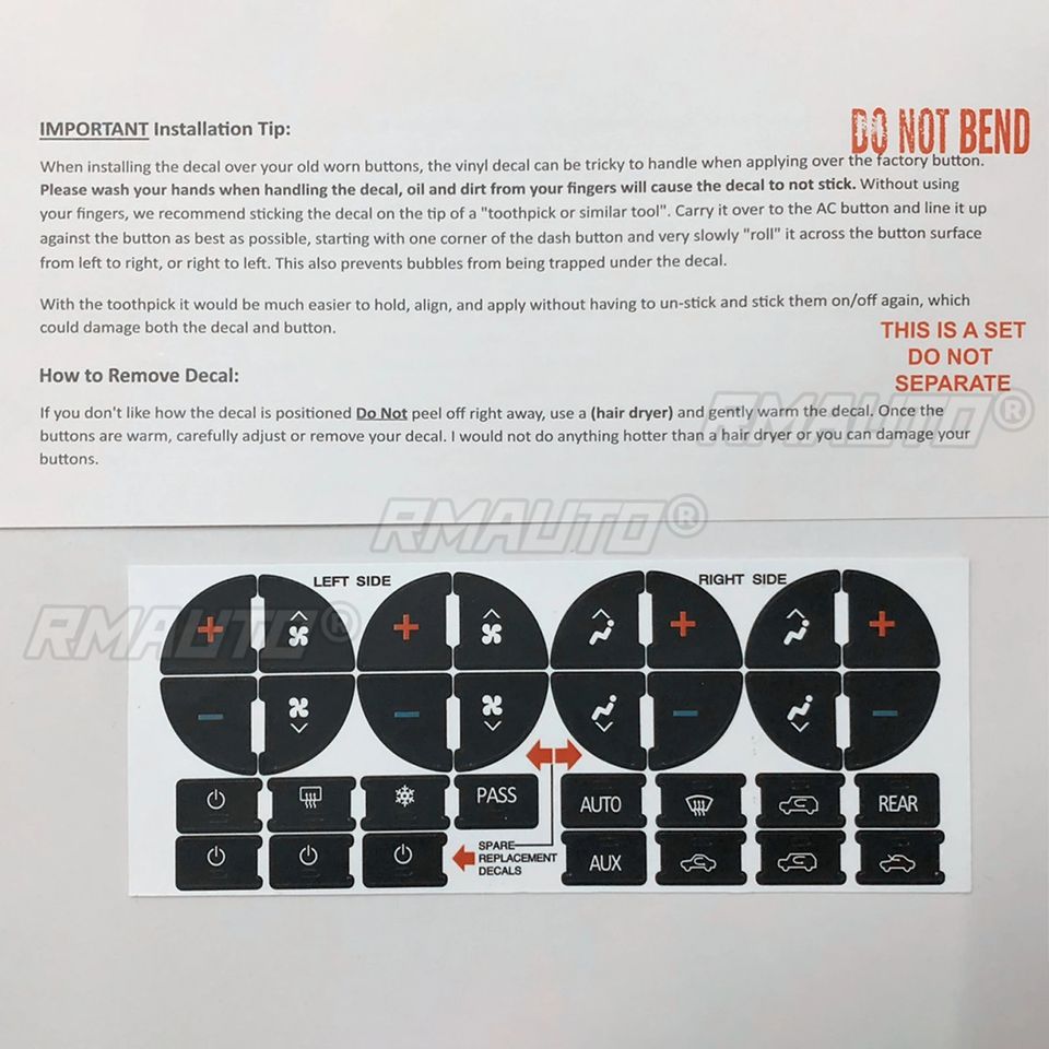 Repuesto de Control de Clima, Piezas Interiores, Adhesivo para Botón de Aire Acondicionado en el Tablero para Tahoe, Suburban, Avalanche, Silverado, Yukon