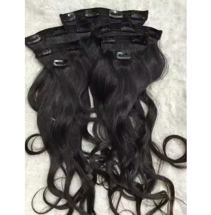 Extensiones con clip hechas de cabello humano real con textura sedosa y recta, sensación ligera y cómoda, sujeción segura