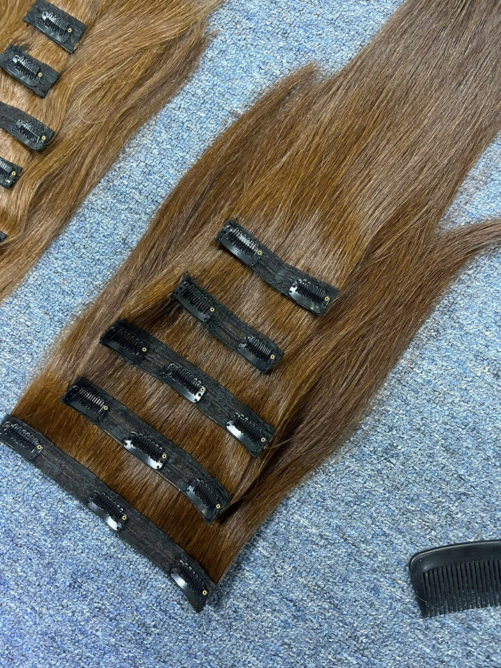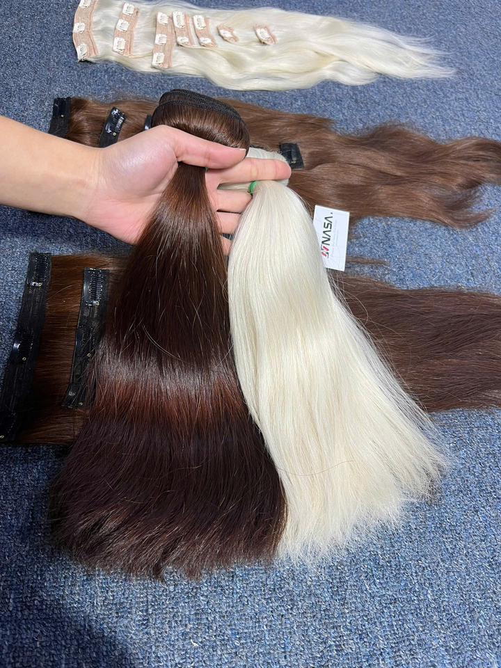 Extensiones de Cabello Humano Vietnamita con Clip, 100g, 55cm de Largo, Súper Doble Trama, Paquetes a Granel, Proveedores de Vietnam