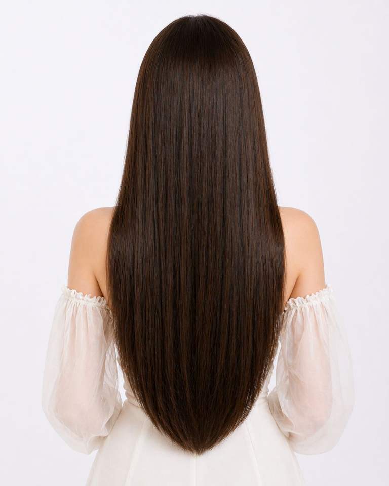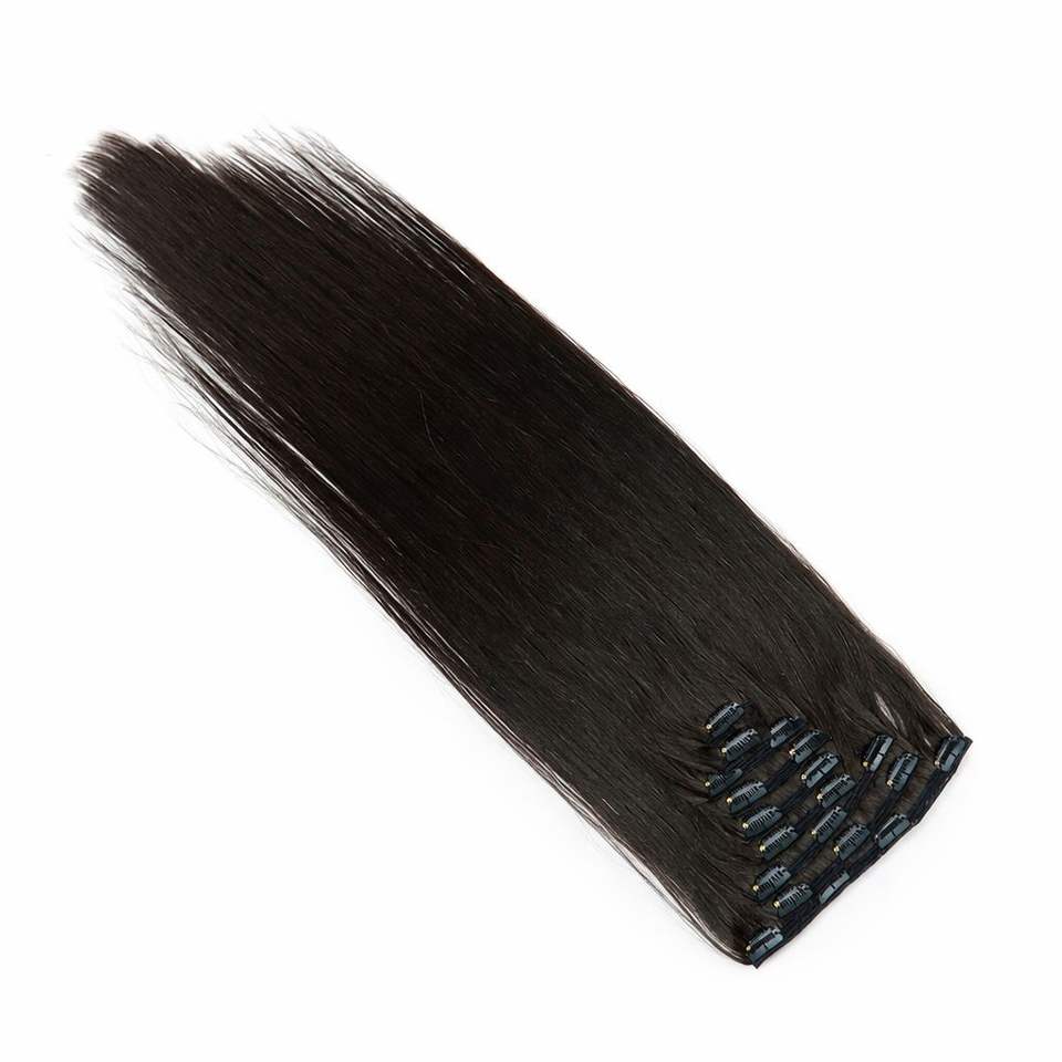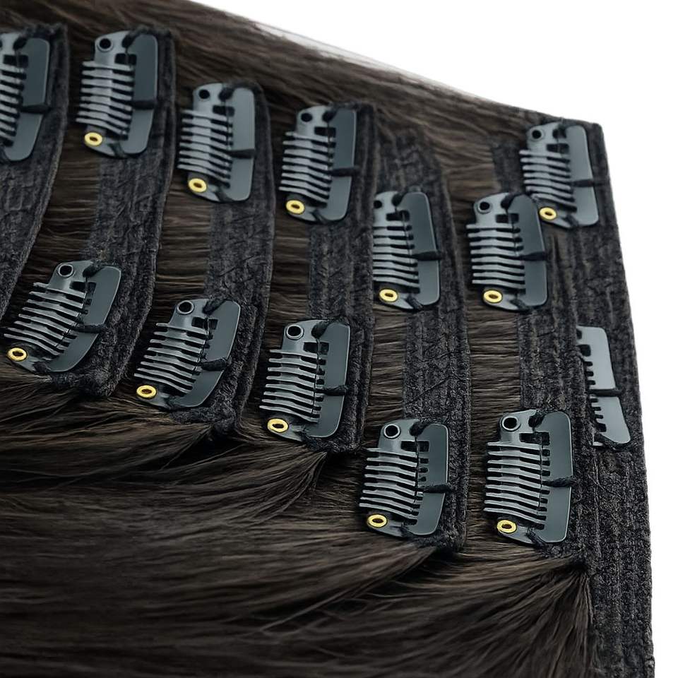 Extensiones de Cabello con Clip, 26 Pulgadas, Color Marrón Oscuro, Calidad Super Double Drawn, Textura Lacia