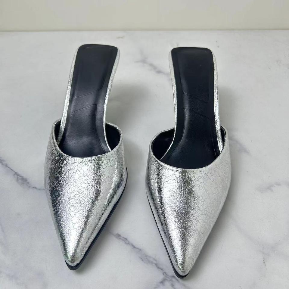 Sandalias de Tacón Cerradas a la Moda en Color Plateado Sexy 2024