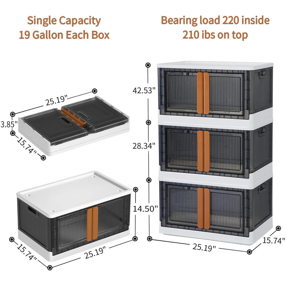 Closet Dorm Room Essentials, contenedores de almacenamiento plegables de 8,4/19 Gal con tapa y puerta, organizador de maletero de coche apilable de plástico